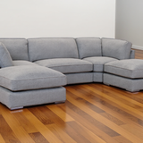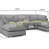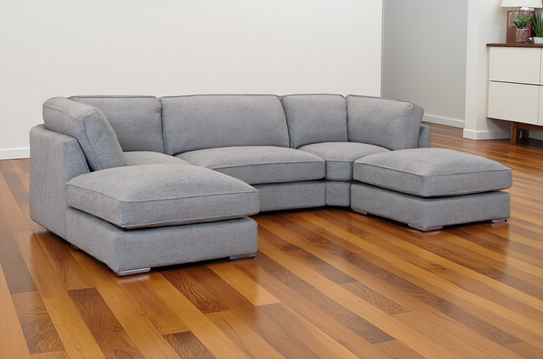 The Ingrid Fullback Sofa U-Shape Corner is a statement piece designed for both comfort and style. Its spacious U-shape provides ample seating, making it perfect for large gatherings or family relaxation. Upholstered in a sophisticated grey fabric, this sofa offers a modern, clean look that complements any contemporary décor.