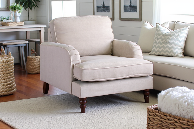 The Remington Sofa Armchair is the perfect blend of style and comfort for any living space. This armchair combines a modern design with a neutral beige fabric that complements various décor themes.
