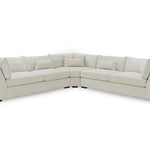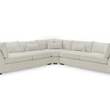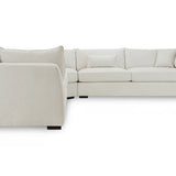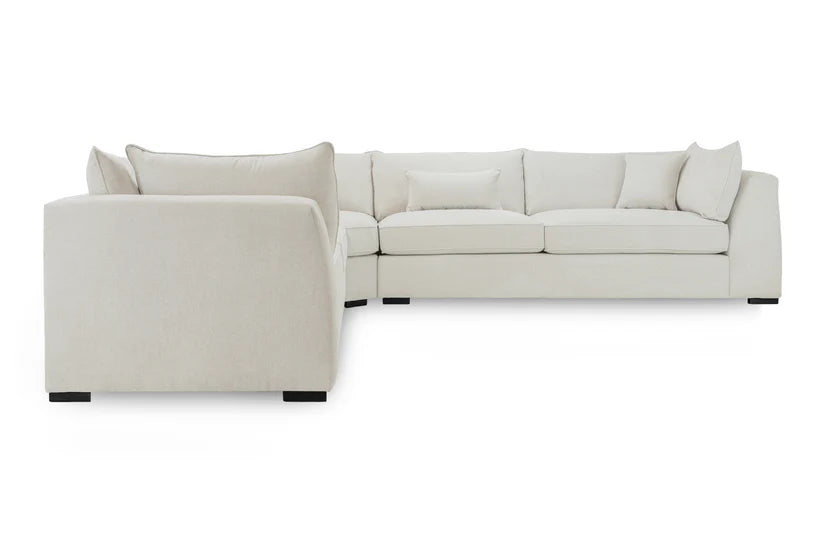 The Riviera sofa stone corner offers sleek and modern design with its flared arms and sturdy black feet. Its removable seat and back cushions make for versatile and customizable comfort. Elevate your living space with this stylish and functional addition.