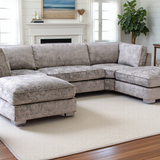 The Rook Fullback Sofa U-Shape Corner combines luxury and practicality in a stunning U-shaped design, perfect for creating a focal point in your living space. Upholstered in a rich truffle-colored or platinum fabric, this sofa offers a sophisticated look while providing exceptional comfort.