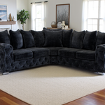 Upholstered in a sleek slate-colored fabric, this corner sofa offers ample seating space. Its spacious slate corner and removable cushion covers offer both style and practicality. The elegant button-tufted design adds a touch of sophistication, while the high-quality materials ensure lasting comfort. Experience the perfect blend of form and function.